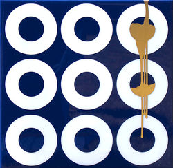 ![]() THE RUNAWAY (or Interrupted Production Line) Acrylic, silk screen ink, plaster and resin epoxy on wood board. Size: 12"x12"x2" | ![]() SPLAT! Acrylic, silk screen ink, plaster and resin epoxy on wood board. Size 12"x12"x2" |